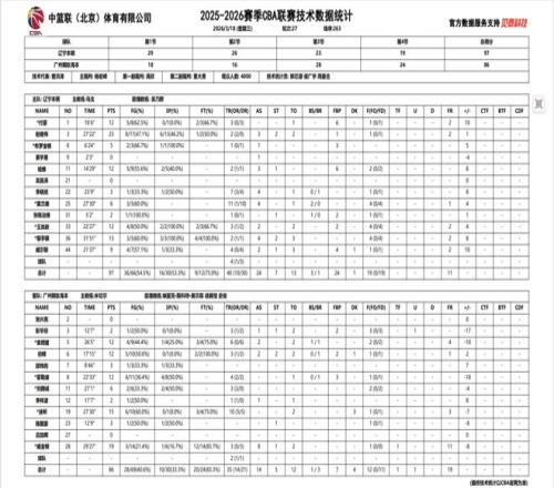 2025-2026赛季CBA常规赛第二十七轮,辽宁本钢对阵广州朗肽海本的比赛于18日晚在辽宁体育馆进行,辽宁本钢队最终以97:86击败广州朗肽海本,豪取“六连胜”。