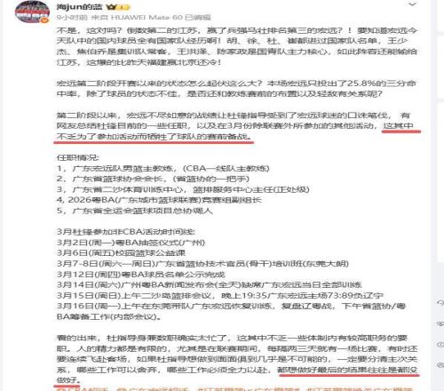 赛后媒体人怒批杜锋身兼数职,频繁参加活动牺牲球队备战。杜锋目前担任了五个职务:广东宏远队男篮主教练;广东省篮球协会会长;广东省二沙体育训练中心,篮排服务中心主任(正处级);2026粤BA(广东城市篮球联赛)竞赛组副组长;广东省全运会篮球项目总协调人。