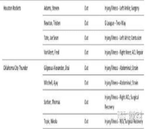 如今处于连败中的火箭,终于迎来利好消息,那就是前往俄克拉荷马,客场对阵卫冕冠军雷霆前,官方报告已经发了出来。我们可以看到雷霆三大主将受伤,除了核心亚历山大,此外杰伦-威廉姆斯和阿杰-米切尔,同样确定无法出场。