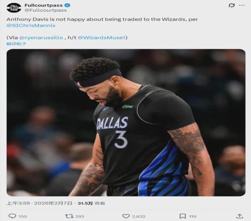 北京时间2月7日,据《体育画报》记者Chris Mannix报道,安东尼-戴维斯对自己被交易到奇才感到不满。另据TA记者Joe Vardon报道,在浓眉去奇才的交易中,经纪人里奇-保罗事先并不知情。话说回来,球队交易不一定要征求经纪人的意见。