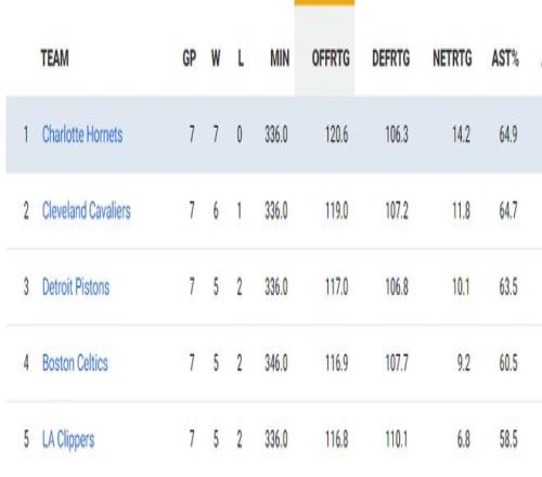 过去的7场比赛黄蜂进攻效率120.6联盟第一,防守效率107.2联盟第三,净效率值14.2联盟第一,这还是我们认识的那支黄蜂吗?