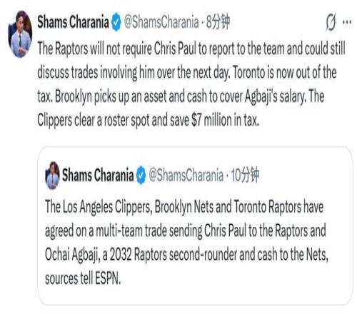 北京时间2月5日,据名记Shams报道,快船、篮网和猛龙达成了一笔关于保罗的三方交易。具体内容如下——