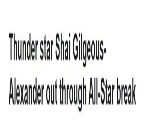 北京时间2月5日,据雷霆官方消息,俄克拉荷马城雷霆队后卫亚历山大,因在周二晚间球队大胜魔术队的比赛中腹部肌肉拉伤,将至少缺阵球队接下来的五场比赛,他将在全明星周末后接受复查。