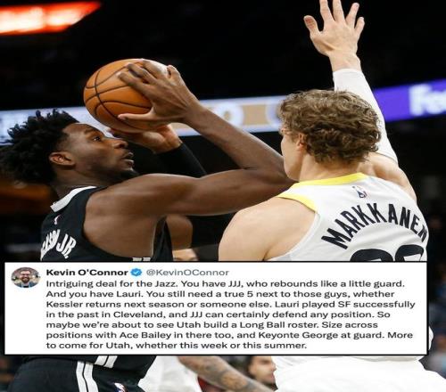 “爵士捡到宝了!小贾伦+马尔卡宁+凯斯勒三塔组合,内线直接起飞!”