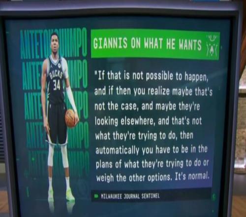 名记Shams在今天的节目上带来了字母哥交易的最新动态——