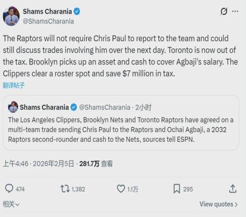 北京时间2月5日凌晨,NBA又有多笔交易达成,其中两笔跟浓眉和保罗有关。我们先说保罗,这笔交易简单一些:猛龙将阿巴基和1个次轮签送到篮网,得到保罗;快船把350万美元送到篮网,得到2019年60号秀马林科维奇的签约权。