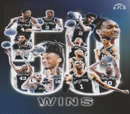 自1976-77赛季ABA和NBA联盟合并以来,马刺已经取得28次单赛季50胜,同期联盟第一。第二是湖人的27次,第三是凯尔特人的22次。截至今天,湖人43胜25负,凯尔特人45胜23负,这两支球队本赛季同样有望拿到50胜。
