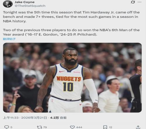 如果季后赛现在开始,湖人首轮打森林狼,火箭首轮打掘金。今天我们写的是掘金球员小哈达威,此役他替补出战27分半钟,投篮16中8,三分10中7,砍下23分4篮板1抢断,正负值+12全场第二高,仅次于布鲁斯-布朗的+13。