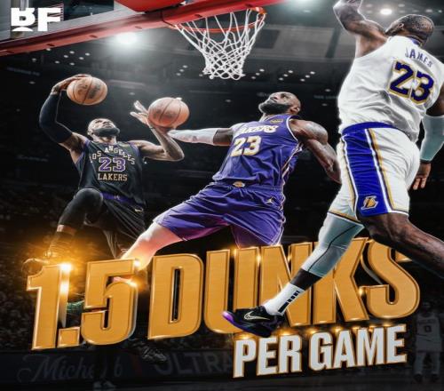 詹姆斯本赛季让权,所以有时候打得没上赛季猛,也因为老了,但他的身体依旧强悍。比如根据统计,詹姆斯本赛季场均1.5次扣篮,这是过去四年最高的。