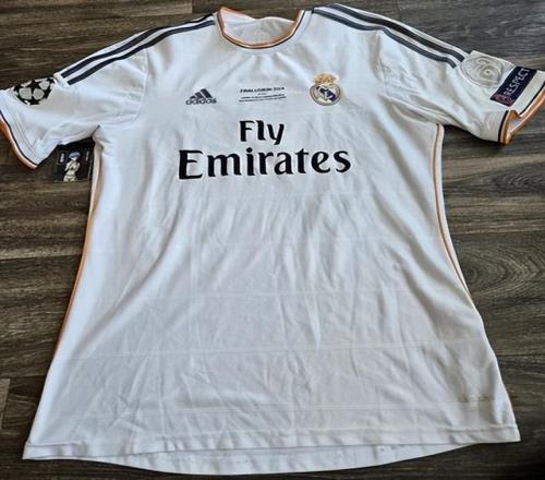 第二个阶段是Adizero时代(2014-2019年)。到了2014-15赛季(皇马勇夺“十冠”的后一年),市售双轨制已经彻底成了标配。这时的设计理念180度大转弯,变成了“极限轻量化”。为了减重,球衣薄得像纸,连胸前神圣的皇马队徽和阿迪标,都全从厚重的刺绣换成了平滑的聚氨酯热压印胶片。