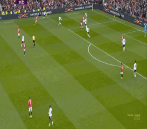 所以在守转攻当中,富勒姆在开场还曾抓住曼联无法及时转换的防守体系漏洞,富勒姆起球打身后的时候,曼联只有三个后卫镇守最后一线: