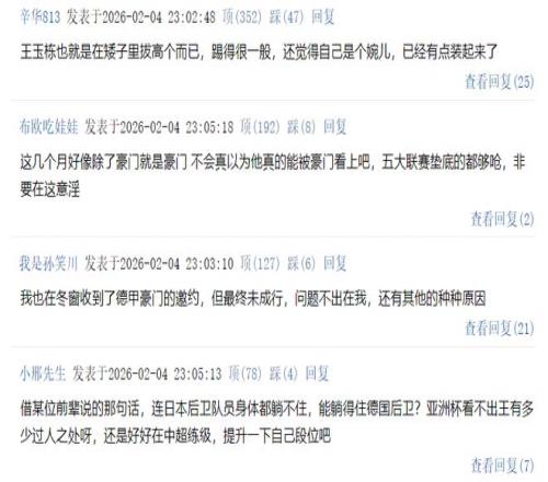 ——以王玉栋实力能在哪个队打个主力轮换别说这些队了,他在圣保利,美因茨,这些队打个主力替补都打不了信不信